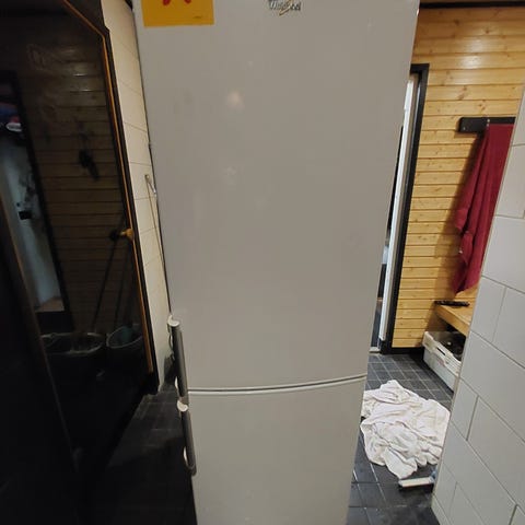 Annetaan rempan alta pois Huurre jääkaappipakastin. Vasemmalla jääkaappi hyllyillä, oikealla pakastin hyllyillä ja laatikoilla. Osa pakastimen laatikoista homeessa, mutta putsattavissa.