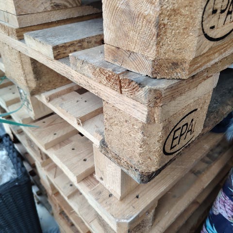 Annetaan kuvan mukaiset eurolavat polttoon tai puiden alle. Ovat rikkinäisiä. Saattaa kerääntyä lisää.