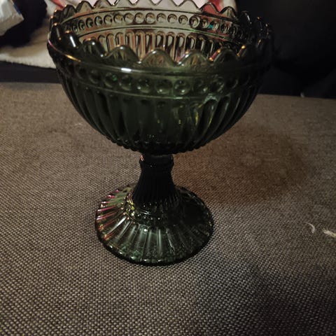 Isompi matta harmaa mariskooli. On ollut vain koristeena. En tiedä onko tämä sitten kakkoslaatua, koska pohjassa on vain pieni "lasimöykky", siinä on varmaan pitänyt olla numerosarja, mutta itse en ainakaan saa siitä selvää. Pohjan alareunassa tuntuu ihan pari pientä terävämpää kohtaa, on siis saattanut saada jostain osumaa jossain vaiheessa. Ei kuitenkaan näy päälle päin. Myydään siis kuitenkin käytetyssä kunnossa, vaikkei varsinaisesti olekaan ollut käytössä.