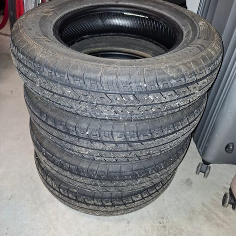 Asuntovaunun nastarenkaat,Michelin 175 75 14R.Kuin uudet n.600km alla olleet.Vanteineen kaikki nastat tallella.