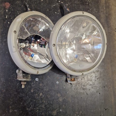 Tarpeettomaksi jääneet, linsseiltään ehjät Hellan lisävalot.