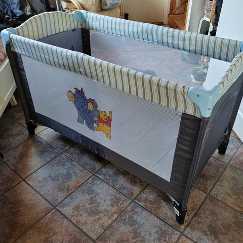 Käytetty, mutta toimiva matkasänky.