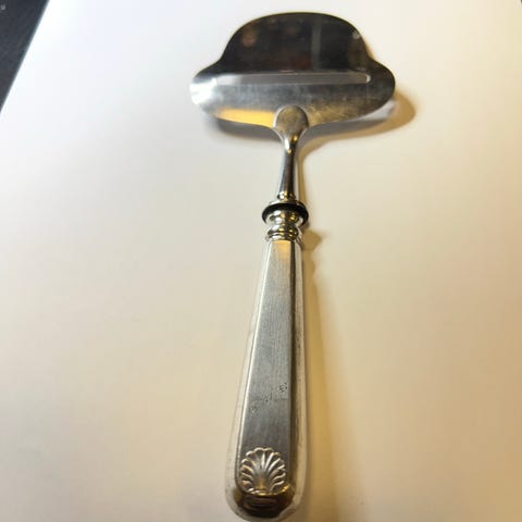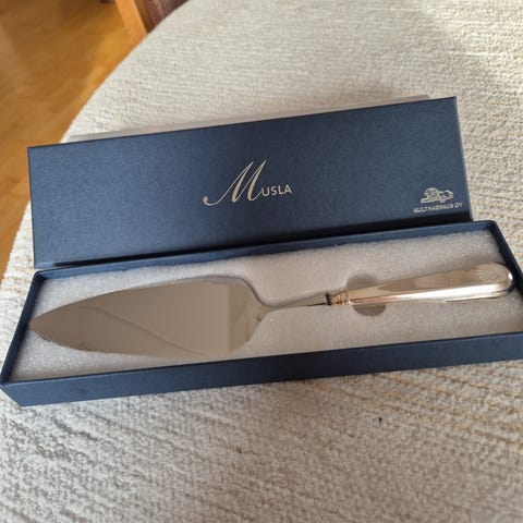 Keräilijän Helmi! Huippukuntoinen Musla hopeinen (terät terästä) juustosetti v. 1927. Nimileima Juho Hesekiel Pekuri.