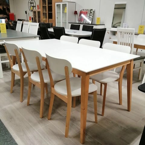 Hakusanoja: 6 hengen ruokailuryhmä, pöytäryhmä, pöytä, tuoli, ruokapöytä, ruokapöydän tuoli, ruokapöydän tuolit
