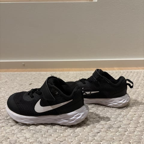 Mustat tarralenkkarit, joissa nauhat koristeena, tarra toimiva. Niken merkki sivussa on persikan sävyinen. Ehjässä kunnossa, käytön jälkeä kyllä näkyy, mutta mielestäni vielä täysin hyvät jatkokäyttöön.