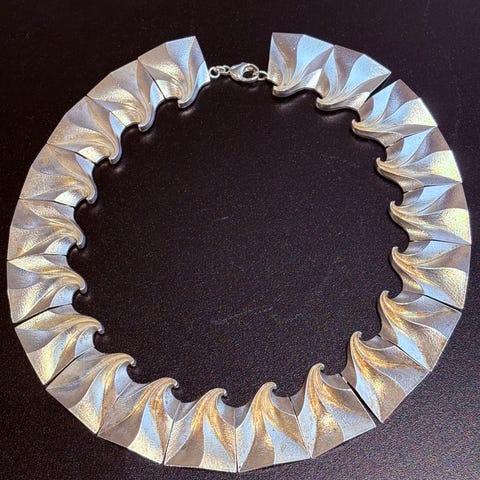 Lumoava rannekoru naisille. Materiaalina hopea. Rannekorussa on useista linkeistä koostuva, aaltoileva muotoilu. Sopii käytettäväksi arjessa ja juhlatilaisuuksissa. Hopeinen rannekoru voidaan yhdistää erilaisten asujen ja muiden korujen kanssa.