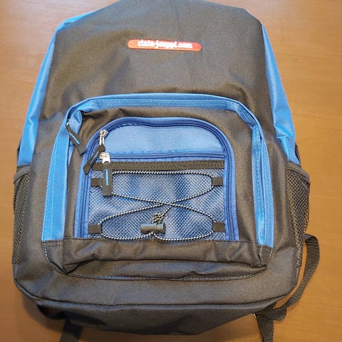 Kukkakuvioinen reppu, väri jo hivenen haalistunut. Vetoketjut toimii. Ripustuslenkki kulunut.