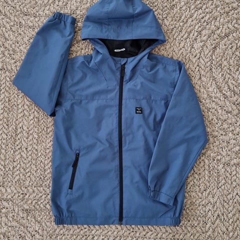 Uusi takki, laput vielä kiinni. Vesipilari 10.000. Helmassa kiristys kumilenkit. Huppu irrotettava.