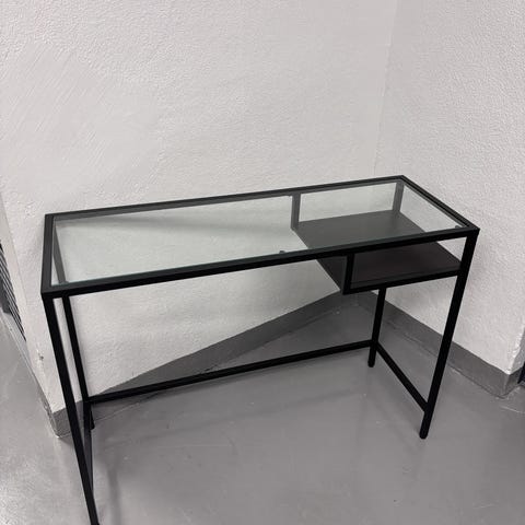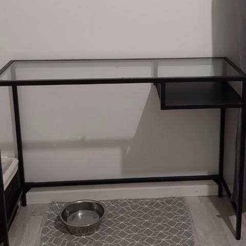 Ikea Vittsjö työpöytä. Käytössä ollut, mutta silti erittäin hyvässä kunnossa. Lasinen pöytälevy. Nouto Sompasaaresta.