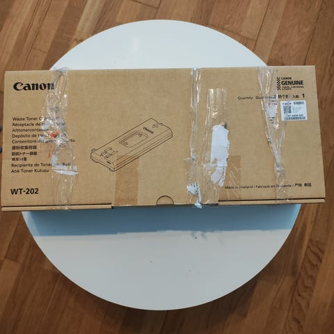Canon WT-202 jätesäiliö tulostimelle. Yhteensopiva Canon iR C3025 / C3020 -sarjan sekä iR-ADV C5560 / C5550 / C5540 / C5535, iR-ADV C3520 / C3525 / C3530 ja iR-ADV C3330 / C3325 / C3320 -sarjan monitoimilaitteiden kanssa. Tarkoitettu tulostimen ylijäävälle väriaineelle (waste toner container).