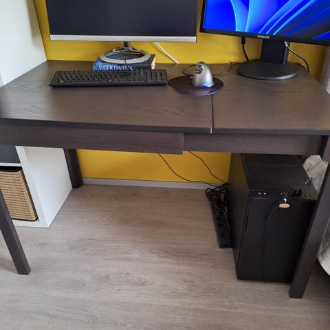 Ikean bjursta jatkettava ruokapöytä. Elämisen jälkiä. Lapsiperhe.. Mut yleisilmeeltään siisti ja on tukeva pöytä. Tuolit likaiset, kankaat pitäis saada irti ja pestyä, ite en jaksa alkaa. Tää täytys nyt pian saada pois pojan huoneesta tilaa viemästä.
