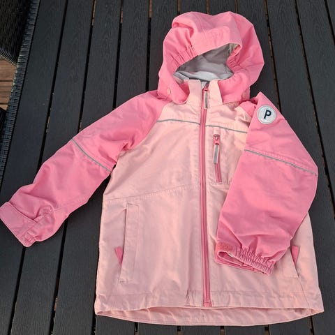 Vaaleanpunainen Pop Weatherpro / Flexisize -kuoritakki. Hyvä käytetty kunto, pientä käytön jälkeä löytynee.