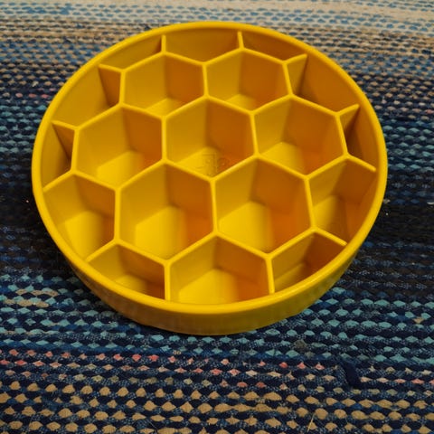 Hyväkuntoinen iso ruokakuppi irroitettavalla metalliastialla. Kumireunat alapuolella, joten pysyy paikallaan.