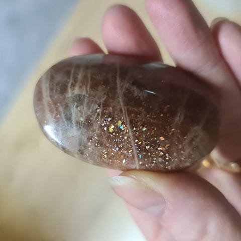 Kauniilla hopeisilla välkkeillä oleva hopea obsidiaani kämmenkivi. 🖤🤍