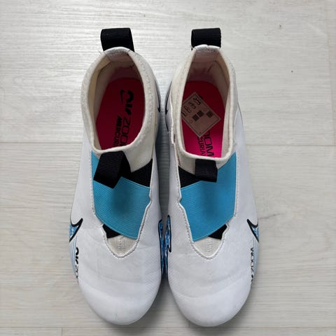 Nike Mercurial Superfly 10 Academy LV8 JR MG-nappikset. Sovitettu, mutta ei koskaan käytetty. Sovituksesta tullut hieman tummentumaa kengän sukkaosan varteen. Koko 38.5/24cm