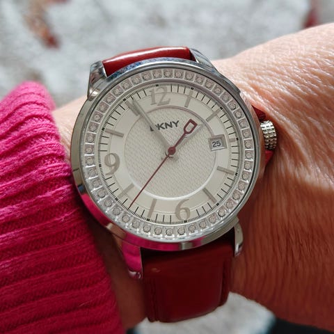 Kaunis DKNY korukello. Pituutta säädettävissä (kaksi palaa nyt irrallisena). Erittäin siisti kunto.