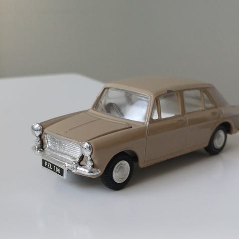 Dinky Toys Rolls-Royce Silver Wraith pienoismalli. Metallinen valettu automalli, kaksivärinen harmaan ja hopean sävyissä. Malli esittää Rolls-Royce Silver Wraith -henkilöautoa yksityiskohtaisella korilla, kromatuilla puskureilla ja vanteilla sekä rullaavilla pyörillä. Sopii keräilyyn tai koristeeksi. Alapuoleen on valettu valmistajan ja mallin tiedot. Koko 1:43. Made In England.