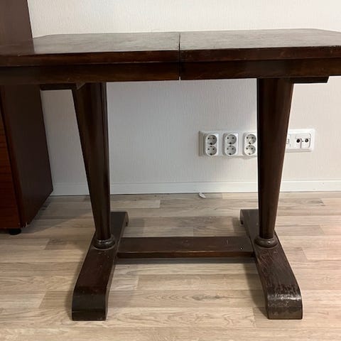 Kuvan hieno täyspuinen vanha sohvapöytä lasilla. Jälkikäteen maalattu. Halkaisija 100 cm, korkeus 55 cm.