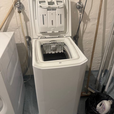 Husqvarna päältä täytettävä pesukone valkoisella rungolla. Pesukoneessa on ylhäältä avattava kansi ja pystyrumpu, joka helpottaa pyykin lisäämistä ja poistamista pienemmässäkin tilassa. Ohjauspaneelissa on ohjelmavalitsin ja painikkeet eri pesuohjelmille sekä näytölle, josta voi seurata asetuksia. Pesukone soveltuu kotitalouskäyttöön tavallisen pyykin pesuun. Tarkemmat tekniset tiedot, kuten kapasiteetti, energialuokka löytyvät käyttöohjeesta, jonka saa mukaan.