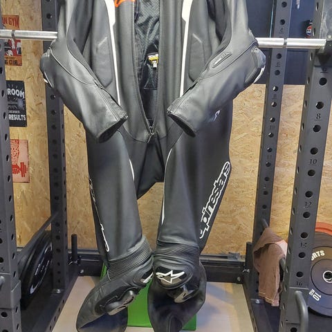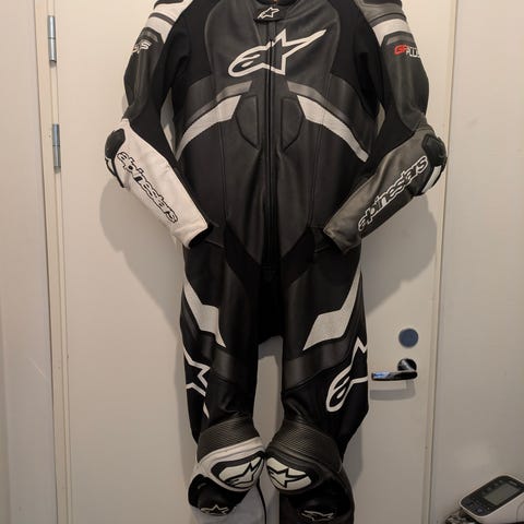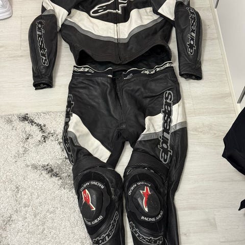 Alpinestars nahkainen ajopuku. Puku koostuu nahkatakista ja -housuista, jotka voidaan yhdistää toisiinsa vetoketjulla. Puvussa on vahvikkeet ja polvisuojille tarkoitetut liukuplatat. Perus ajoon tai radalle. Siistissä kunnossa. Väri musta. Koko 54. Hinta ei oo kivee lyöty et pistä viestii vaa tulemaa.