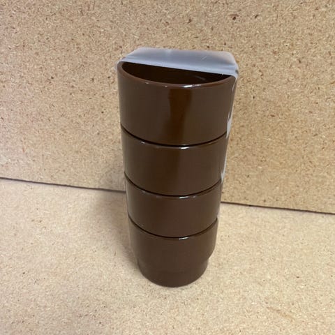 Sarvis munakupit, valmistettu Suomessa. Setti sisältää 7 eriväristä kuppia: punainen, vihreä ja keltainen.