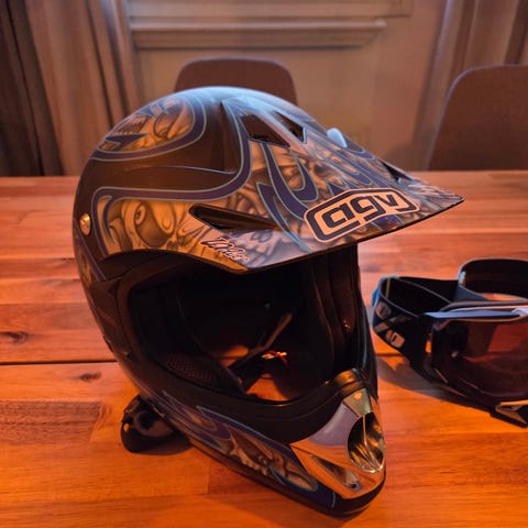 AGV Blitz motocross-kypärä, koko 60. Kypärässä on irroitettava leukasuoja, jota ei juurikaan ole käytetty.