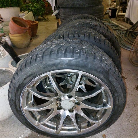 Todella hyvä pintaiset (6mm) Continental IceContact 2 nastarenkaat vanteilla!