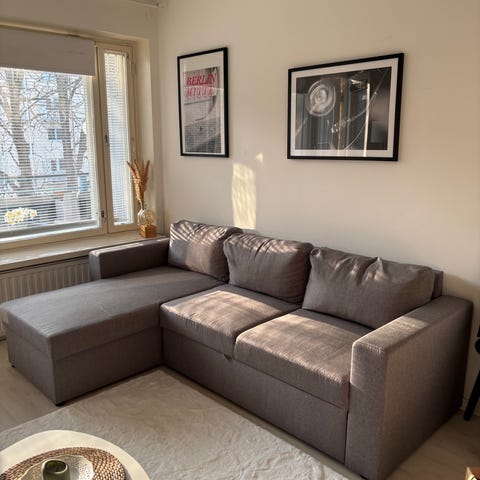 Hyvässä kunnossa oleva tumman harmaa levitettävä sohva. Sisällä säilytystilaa. Haku Järvenpään keskustasta.
