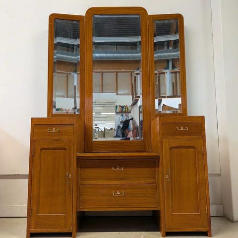 Kaunis vanhan ajan peilipiironki etsii uutta kotia. Yleiskunto ikäisekseen hyvä. Rakenteeltaan tukeva. Vanhaa madon reikää jaloissa ja taustassa. Vetolaatikot toimivat hyvin. Ei hajuja. Ajan tuomia jälkiä osassa sisustaa. Peili ja pikku kaapit irroitettavat. Peili ehjä ja selkeä.