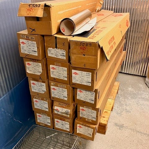 Mukaan tulee sekalaista tarrateippiä ja siirtokalvoa. Lisäksi auringonsuojakalvoa muutama vajaa rulla.