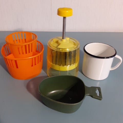 Paljon erilaisia astioita ja muita talonpoikaisesineitä sadan vuoden ajalta: kupari- ja pläkkiastioita, sallattikaukalo, sihti, vakka, sosekaukalo, silitysrauta, suolasalkkari, kahvimylly ym.