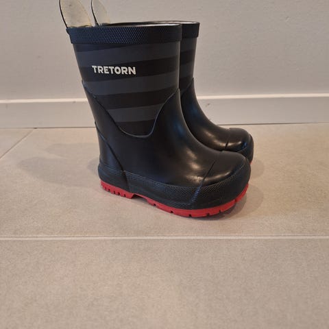 Tretorn lasten vuorelliset Muumi-kumisaappaat, koko 21. Saappaissa on varsi, jossa on tekstiilipäällys ja kiristettävä yläosa.