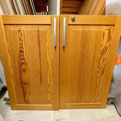Vanhan Lundian ovia erityisen paljon. Jonkin verran hyllyjä. Yksi isompi ovi. Saranat kokolailla puuttuvat.