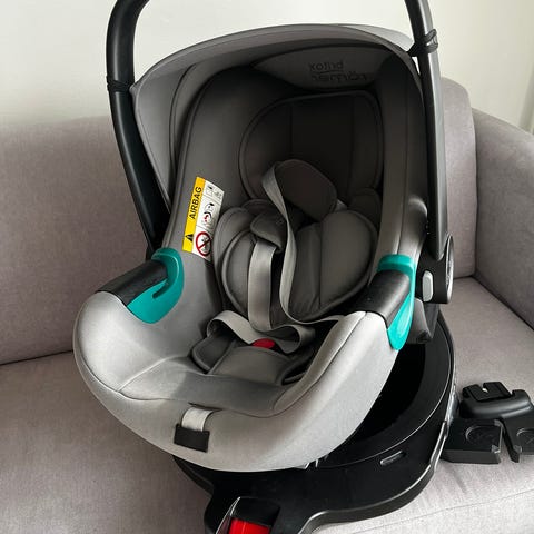 Myydään kahdella lapsella ollut turvakaukalo ja telakka. Turvavyökiinnitys. Ei kolaroitu.