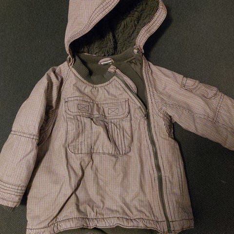 Myydään ihana takki keväälle tai kesään. Koko 86. Hihoissa ja selällä heijastimet. Irrotettava huppu.