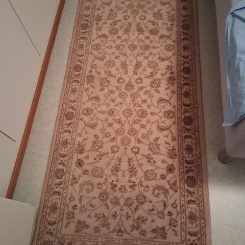Arcchio matto kukkakuviolla. Yhdessä pyöreässä ja yhdessä suorakaiteen muotoisessa matossa on vaalea keskiosa, tumma reunus ja monivärinen kukkakuviointi. Sopii käytettäväksi esimerkiksi olohuoneessa, makuuhuoneessa tai eteisessä sisätilojen lattiamattona. Mattojen mitat 60x120 ja 122.kpl hinta