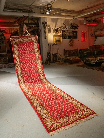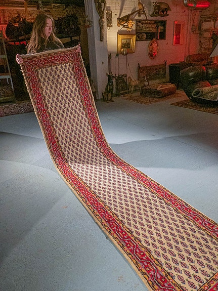 käsinsolmittu itämainen aitomatto villamatto vintage persialainen aito villa sarouk punainen pitkä käytävä kukka kukkais matto käsinkudottu käsin käsintehty käsityö antiikkimatto vintagematto helsinki helsingissä