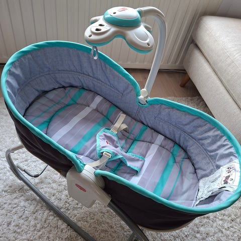 Emma merkkinen sitteri. Saa säädettyä eri asentoihin ja taitettava jalka joka pitää paikallaan jos ei halua että sitteri keinuu.. Siisti, ehjä, käytetty kunto.