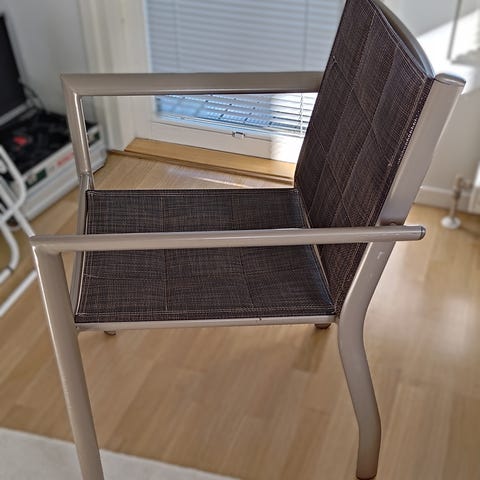 Musta ruokailuryhmä 140×80 korkeus 75 ( pöydän toisessa päästä pieni jälki tullut kuumuudesta) 4 tuolia pehmusteineen..!!