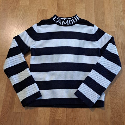 Name it neulepaita / neulepusero tytöille, koko 146/152cm. Tummansininen puuvillainen pitkähihainen paita, jossa valkoinen pilkkukuosi.