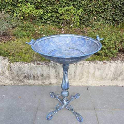 Tyylikäs rautainen lintujen kylpyallas, jossa luonnollinen ruostepatina, lehtimuotoisen kulhon, koristeellisen spiraalikoristeisen jalustan sekä kahdella koristeellisella linnulla reunassa. Ajaton ja tunnelmallinen puutarhaesine, joka yhdistää käytännöllisyyden hienostuneeseen koristeelliseen vetovoimaan.17x33.5x30cmTämä Xclusive-tuote lähetetään erittäin hyvin pakattuna. Lisäksi pakettiin kiinnitetään hauras-teippiä ja lähetyksen seurantakoodi on saatavilla lähettämisen jälkeen. Toimitetaan ilman ruuveja.