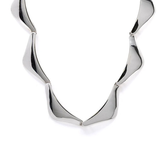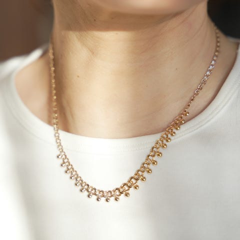 Tämä ei ole jokapäiväinen ketju. Bismarck-kaulakoru on aluksi tyylikäs ja hienovarainen, ja sitten se rakentuu eteenpäin näyttäviksi, paksuiksi lenkeiksi – aivan kuin se tietäisi tarkalleen, mihin valokeilan tulisi kohdistua.
