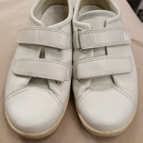 Ecco nahkakengät, koko 38. Mustat, matalalla korolla varustetut kengät, joissa on kantikas kärki. Päällinen näyttää sileältä nahalta ja sisäosa on musta. Sopivat arki- ja siistimpään käyttöön. Huomioithan mitat ja koon Ecco-kokotaulukon mukaan.