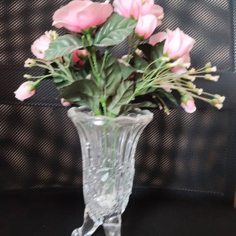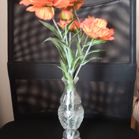 Myydään tekokukka ja ruukku. Ruukun "alunen" on kiinni ruukussa. Ruukun korkeus 13,5 cm.
