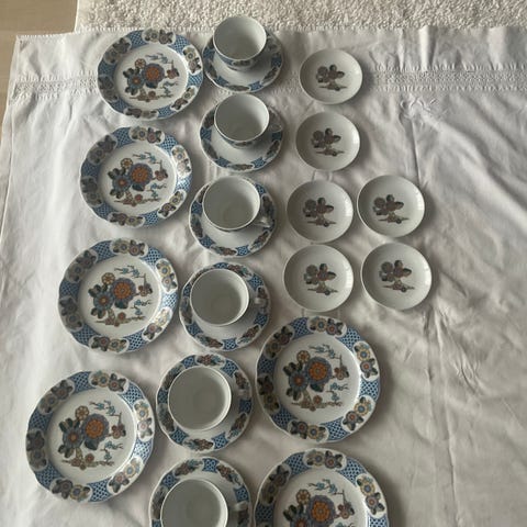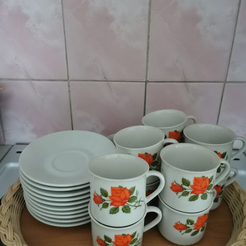 Kiva koristeellinen linnunpönttö kaupan päälle! Vain nouto särkyvän tavaran vuoksi 🤗 Astiastossa 6 kpl kuppeja+kannu+sokerikko+kermakko