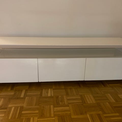 Ok kuntoinen tv-taso/ hyllykkö. Kansi korkeakiiltoinen, muuten matta.