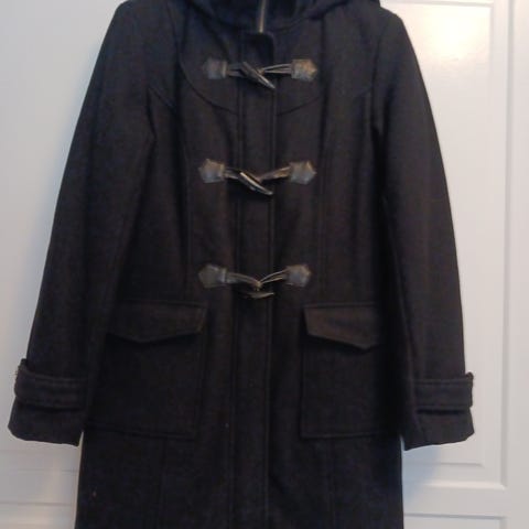 Object pitkä takki naisille, koko 40. Harmaa, meleerattu villakangas.