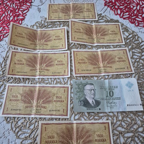 Kuvassa näkyvät viisi seteliä vaikkapa keräilijälle, ehdota hintaa jos kiinnostuit!