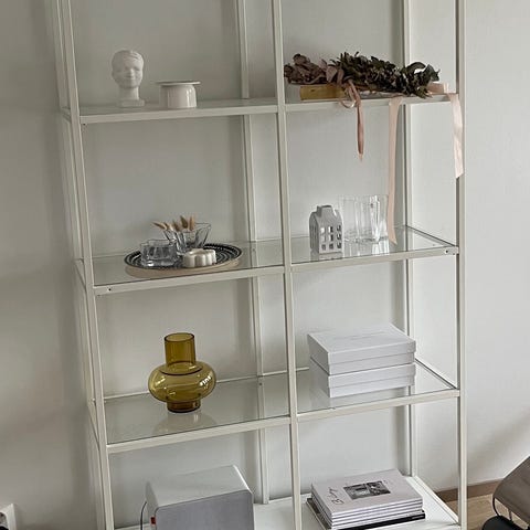 Miltei uudenveroinen hylly Vekeltä. Noin 120cm korkea ja erittäin tyylikäs ja tilava. Ei kovin painava.