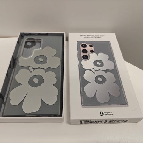 Paranna Samsung Galaxy S24 Ultra 5G:n tyyliä Samsung x Marimekko kohokuvioidulla kotelolla. Tämä laadukas kotelo ei vain suojaa puhelintasi, vaan lisää myös ripauksen ainutlaatuista persoonallisuutta kohokuvioidulla Unikko-kuviollaan.